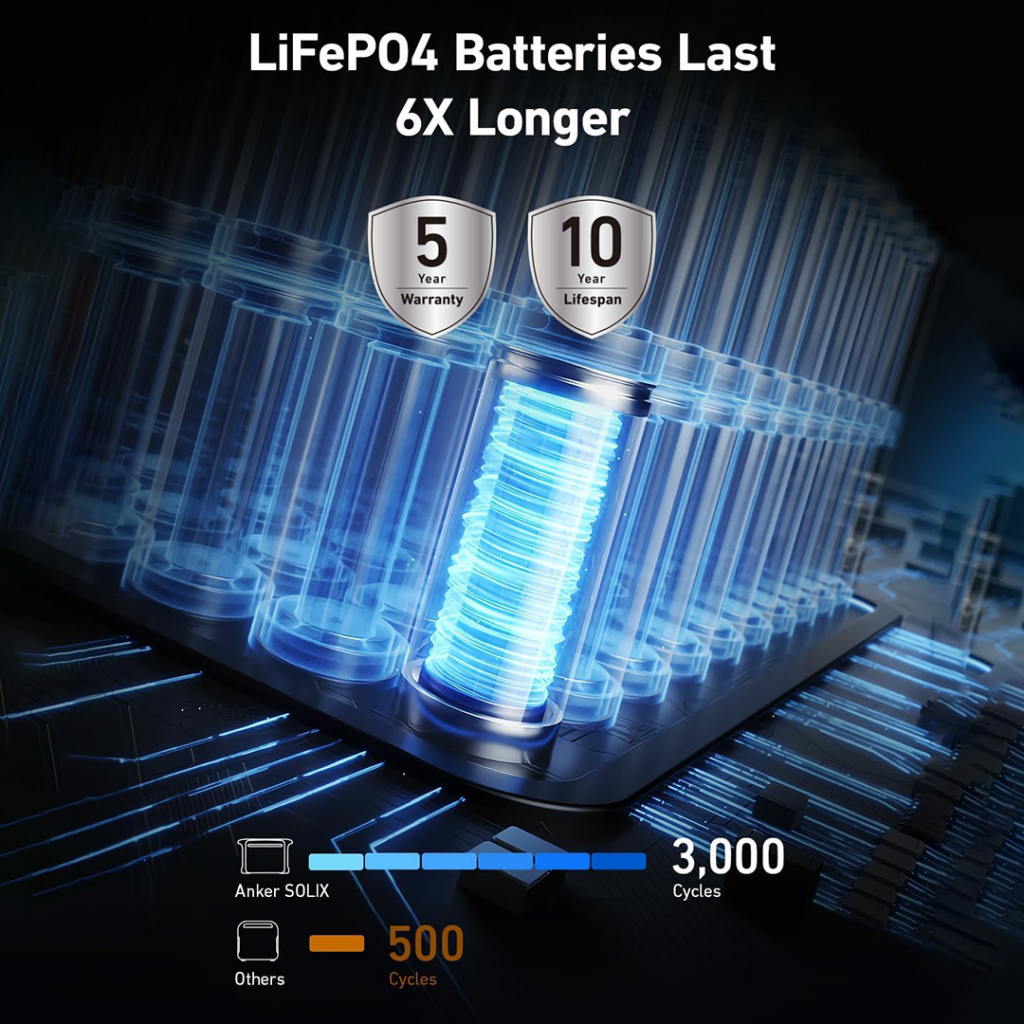 | نوع باتری پاوربانک | لیتیومآهن-فسفات (LiFePO₄) – بیش از ۳۰۰۰ چرخه عمر |