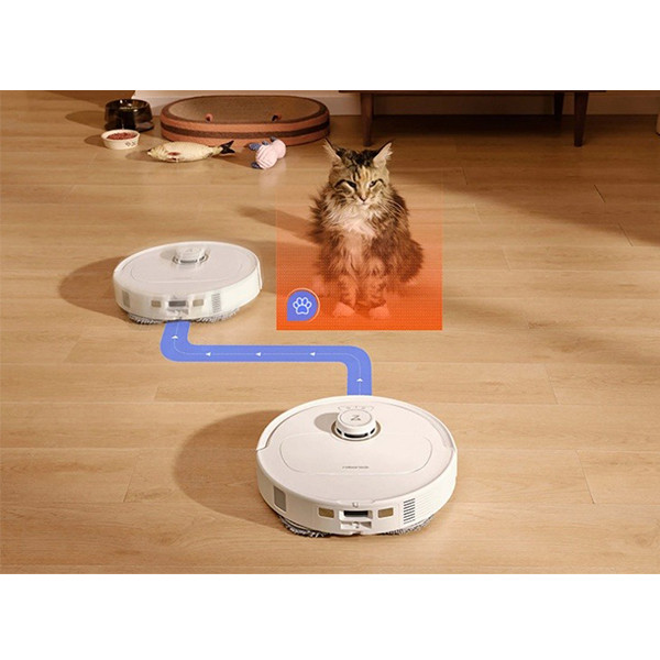 این جارو محصول کمپانی Roborock است. شرکت Roborock یکی از شرکتهای مشهور در زمینه جاروهای هوشمند است که عملکرد فوق العادهای دارد. جارو رباتیک Roborock Q Revo Max V با استفاده از جدیدترین فناوری Single All-Rubber Brush و به لطف قدرت مکش فوق العاده 7000Pa، به طور موثری کثیفی را از انواع مختلف کفپوشها پاک میکند و به تمیز کردن عمیقتری روی فرشها دست مییابد و سرعت برداشت مو را بهبود میبخشد و در عین حال گره خوردن کمتر را تضمین میکند. این یک انتخاب ایده آل برای خانوادههای شلوغ با حیوانات خانگی است. طراحی جارو رباتیک هرچند ظاهر جارو رباتیک معیار مهمی برای انتخاب و خرید آن نیست، ولی جارو رباتیک Qrevo MaxV بسیار شبیه جارو رباتیک Qrevo بوده و داخل پکیج آن یک داک عمودی و با ابعاد نسبتاً بزرگ دیده میشود. ایستگاه داک دو مخزن آب بزرگ دارد که از بالا قابل دسترسی هستند. یکی از آنها از 4 لیتر آب تمیز پر شده و دیگری 3.5 لیتر آب آلوده را در خود نگه میدارد. طراحی این محصول کاملاً مینیمال است و نباید انتظار داشته باشید المان خاصی را به دکور شما اضافه کند. از نظر اندازه، داک نسبتا جمع و جور و باریک بوده و ابعاد آن 340 در 487 در 512 میلی متری دارد. با این حال، همچنان برای خانههایی با فضای محدود، گزینه مناسبی نیست. خود ربات همان ظاهر دایرهای رایج را دارد و با ابعاد 350 در 353 در 102 میلیمتری عرضه میشود. بالای دستگاه محل قرارگیری فناوری LiDAR و دوربین AI RGB بوده تا برای ناوبری و تشخیص موانع خیالتان راحت باشد. زیر دستگاه دو پد چرخان تعبیه شده و یکی از آنها ماژول متحرک دارد، یعنی با پیشروی به سمت قرنیزها، هیچ گوشه کناری را آلوده نمیگذارد. قدرت مکش جارو رباتیک Roborock Q Revo Max V این جارو رباتیک از لحاظ عملکرد مکشی واقعاً عالی است. در هنگام جارو کشی موهای بلند تمایل دارند به دور برس کناری بپیچند، اما باز هم برتری این ربات نظافتچی در جاروکشی نظرها را به خود جلب میکند، جارو رباتیک Q Revo MaxV با قدرت مکش 7000 Pa برای جمعآوری آخرین ذره گرد و غبار از فرش یا سطح صاف آماده است. تا جایی که میتوانیم اعلام کنیم، نرخ موفقیت 97 درصدی را به نام خود ثبت کرده است.
