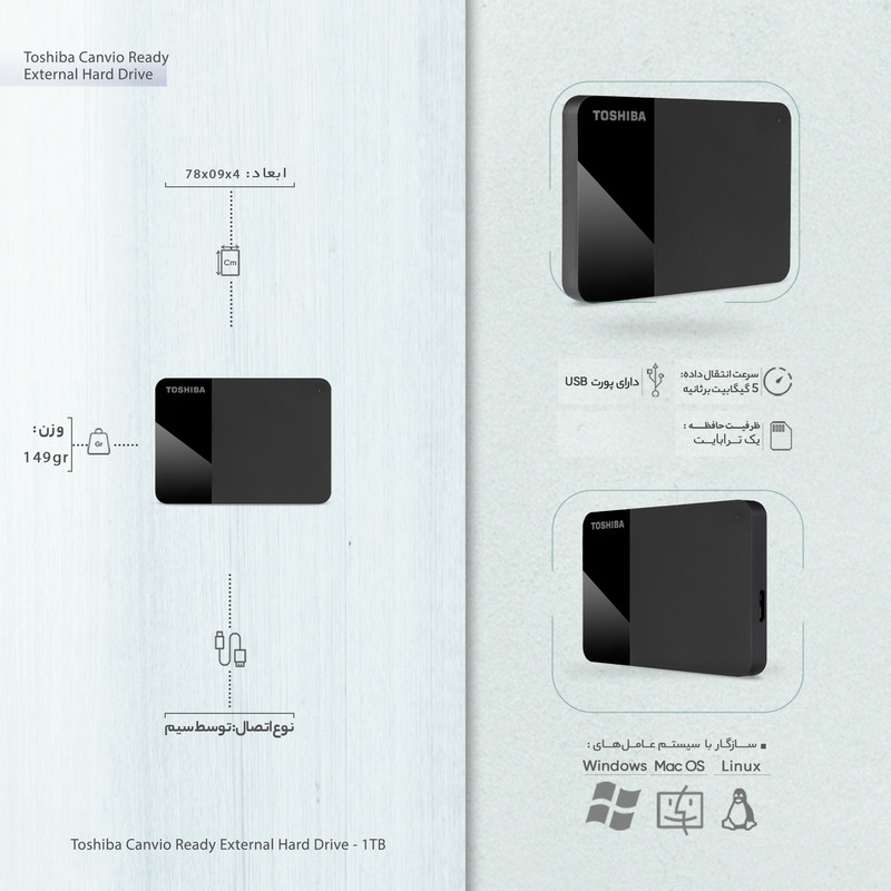 ویژگیهای هارد اکسترنال توشیبا مدل Canvio Ready ظرفیت 1 ترابایت